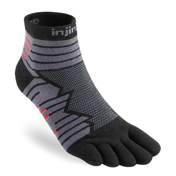 Constructed to provide comfort and support even after miles of wear, the Injinji Ultra Run Mini-Crew features cushioned terry throughout the foot and toes, to help soften the impact of tough runs and workouts on feet. Each toe is separated, eliminating all skin-on-skin contact between the toes and preventing blisters, while knit lines on the bottom of the footbed offer additional arch support. The Mini-Crew length rests just above the ankle and seals out dirt and debris.