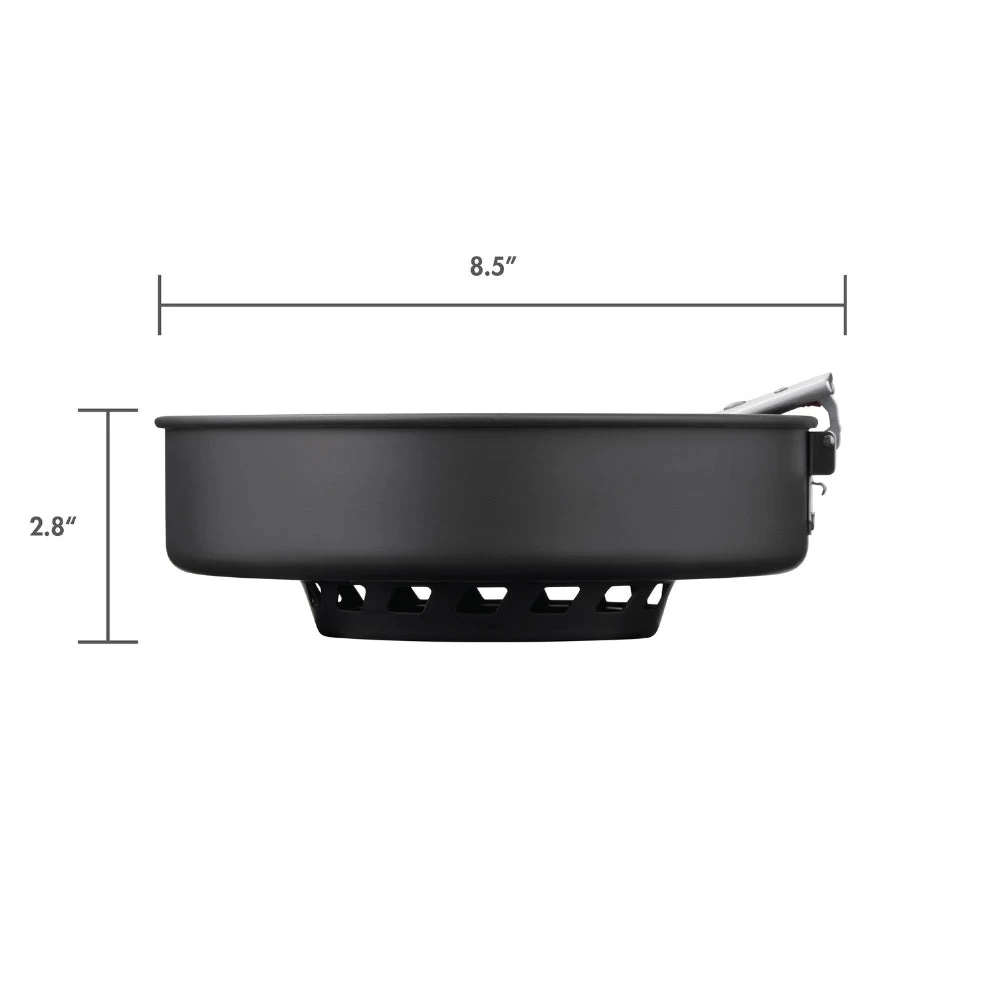 Featuring an enclosed, heat capturing ring on the base and a fusion ceramic non-stick cooking surface – this hard anodized aluminium skillet allows for versatile cooking in any location.
